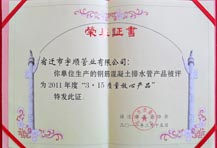 公司先后獲得“ISO9001:2008質量管理體系認證”、“江蘇質量誠信AAA級企業”、“315質量放心產品”等等榮譽稱號,為我市的經濟建設及制管業的發展作出了應有的貢獻。